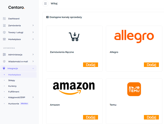 Aktualna lista integracji dostępna jest w dedykowanej sekcji https://centoro.com/integracje/. Nieustannie rozbudowujemy platformę o kolejne narzędzia zarówno z obszaru marketplace jak i usług pobocznych takich jak systemy kurierskie, fakturowe itp.